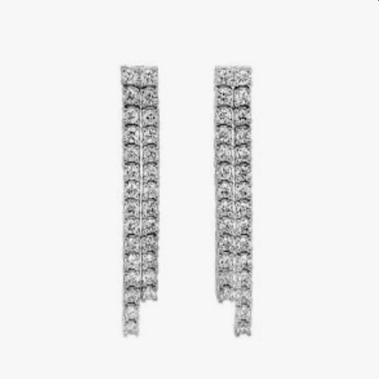 Two parallel lines of sparkling stones, set closely together in a sleek, elegant design.